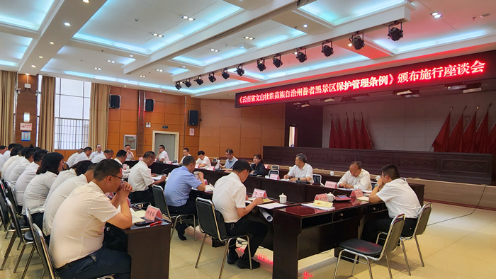 4月21日,《云南省文山壮族苗族自治州普者黑景区保护管理条例(修订)》(以下简称《条例》)颁布施行座谈会在丘北召开。新修订的《云南省文山壮族苗族自治州普者黑景区保护管理条例》将于5月1日起正式施行。