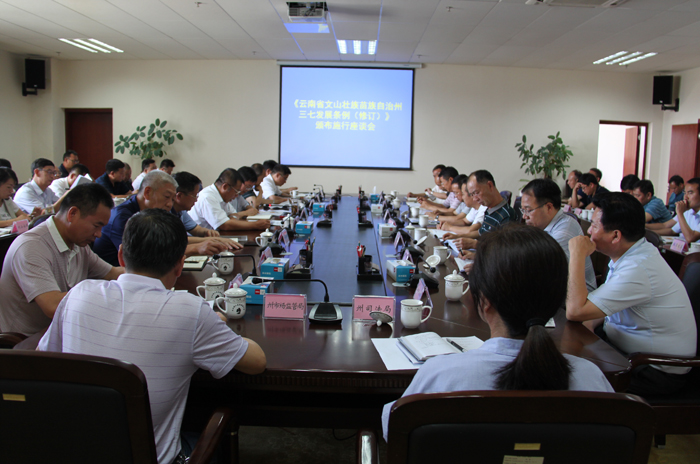 本站讯 6月1日,《云南省文山壮族苗族自治州文山三七发展条例(修订)》颁布实施座谈会召开,研究部署新《三七条例》全面贯彻实施相关工作,引领和推动全州上下形成学习宣传贯彻热潮,为加快推进文山三七产业高质量发展、服务人民健康、促进地方经济社会繁荣发展提供法治保障。