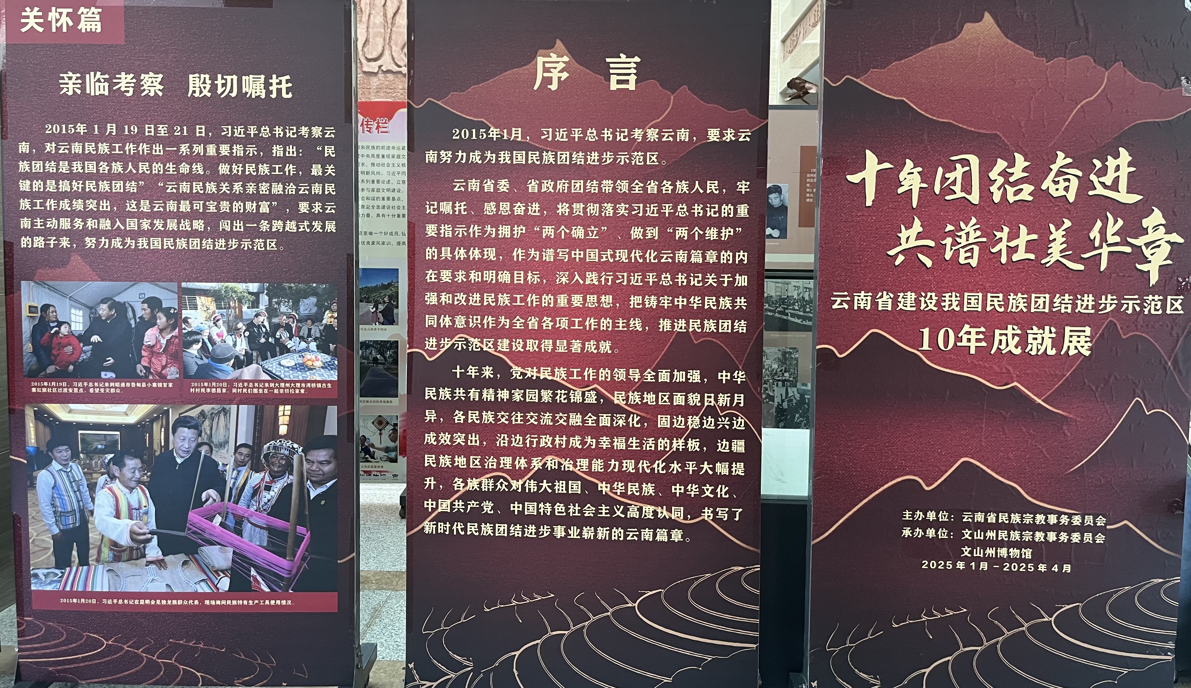 近10年来,云南始终以铸牢中华民族共同体意识为主线,全力推进民族团结进步示范区建设,收获了累累硕果。此次成就展聚焦习近平总书记考察云南时提出的“要求云南主动服务和融入国家发展战略,闯出一条跨越式发展的路子来,努力成为我国民族团结进步示范区”的殷切嘱托,全方位呈现了云南省及各州(市)过去10年推动民族团结进步示范区建设所取得的辉煌成就。展览既是对过往成绩的总结,更是对未来工作的激励。