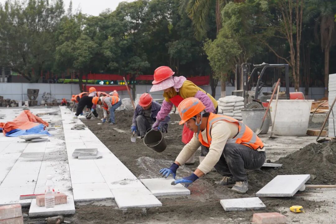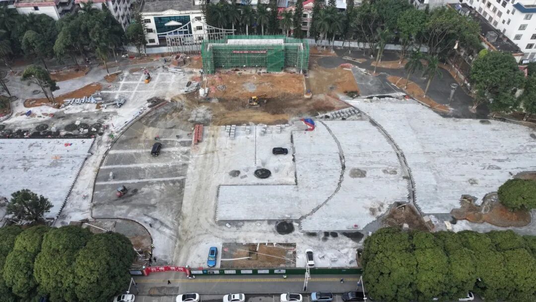 轰鸣的机械声回荡在富宁县富州广场上空,施工围挡内工程车辆往来穿梭,工人们正抢抓工期推进舞台框架搭建与附属设施施工,一派繁忙景象。这座承载着全县人民25年记忆的城市地标,正循着一份人大议案的指引,悄然开启“蝶变”之旅,即将跃升为彰显本土特色的文化新名片。
