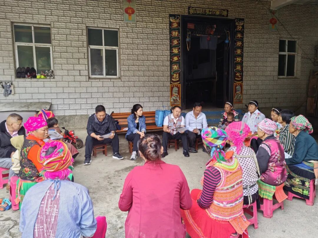 沙么枯村小组是威龙村委会下辖的苗族聚居村寨,村民日常交流以苗语为主。为了增强群众的法治观念,王德芳采用进村寨“院坝讲法”普法方式,聚焦村民关注的土地流转、婚姻纠纷等民生问题,结合《中华人民共和国保守国家秘密法》《广南县文明殡葬礼仪规范》等政策法规,通过苗语讲解、案例剖析等方式,向村民阐明行为界限及维权途径。