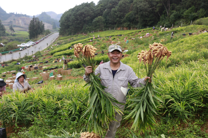 2023 年,胡玉金带头成立了一家农业开发公司,创新推出 “村集体 + 公司 + 农户” 的发展模式,率先建成 100 余亩标准化种植示范基地。“通过公司先行先试,在市场风险把控、技术优化、销售渠道拓展等方面筑牢基础,确保产业稳定发展。有了公司作为后盾,可以帮助农户减少损失、降低生产成本,切实保障农户经济收益。” 胡玉金介绍道。为攻克技术难关,他自费前往昆明、石林、通海等地考察学习先进种植技术;同时主动“请进来”,邀请农业专家进村入户开展生姜种植技术培训,从选种、育苗到田间管理、病虫害防治进行全程指导。在此基础上,探索发展有机生姜,通过严控种植流程、减少化学农药与化肥使用,全力保障生姜品质。