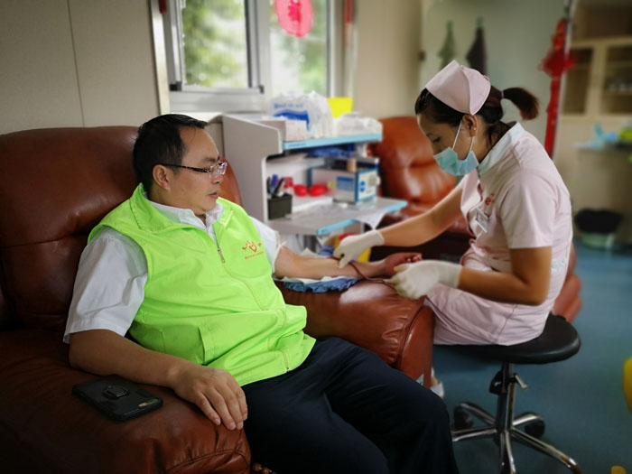 今年“世界献血者日”的活动主题是“安全血液拯救生命”,活动口号为“献血,让世界更健康”。上午9点,干部职工来到七花广场义务献血现场,在血站工作人员的引导下填写《义务献血登记表》,井然有序配合着工作员进行身体检查、化验血型、抽取血液等工作。他们当中,有第一次参与献血的年轻人,也有半年就参加一次献血的积极参与者。他们说,无偿献血是每个公民应尽的义务,作为一名机关干部职工,更是要发扬无私奉献的精神,以实际行动践行“服务人民”的总要求。当天,4名干部职工累计献血1400毫升。