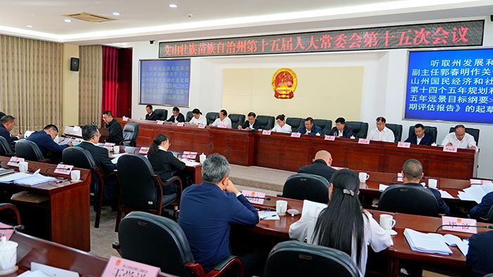 会议听取《文山州2023年州本级财政预算调整方案(草案)的报告》和州人大财经委审查结果报告;听取《2022年国有资产管理情况的综合报告(书面)》;听取《文山州2022年企业国有资产(不含地方金融资产)管理情况的专项报告》和州人大常委会调研组专项调研报告;听取《<文山州国民经济和社会发展第十四个五年规划和二0三五年远景目标纲要>实施中期评估报告》和州人大常委会调研组调研报告;听取《推进全州教育高质量发展工作情况的报告》和州人大常委会调研组调研报告;听取《<全州殡葬市场价格秩序监管工作情况报告>审议意见办理情况的报告》和州人大社建委跟踪监督报告;听取《贯彻实施<云南省创建生态文明建设排头兵促进条例>情况的报告》和人大常委会调研组调研报告;听取《州十五届人大三次会议以来代表建议、批评和意见办理情况的报告》和州人大常委会视察组视察报告(书面);听取《州人民政府推进管边控边常态化职业化规范化工作情况的专题视察报告》;听取《全州发展壮大口岸经济情况的专题调研报告》;听取《<文山壮族苗族自治州乡村清洁条例(草案)>审议结果的报告》;听取《文山州人大常委会重大民生实事项目人大代表票决制实施办法(草案)》的议案及说明、《关于文山壮族苗族自治州重大民生实事项目完成情况满意度测评暂行办法(草案)》的议案及说明、《文山州人大常委会关于国家机关工作人员任后监督办法(草案)》的议案及说明;听取《文山壮族苗族自治州第十五届人民代表大会常务委员会代表资格审查委员会关于个别代表的代表资格审查情况的报告》;听取有关人事议案。