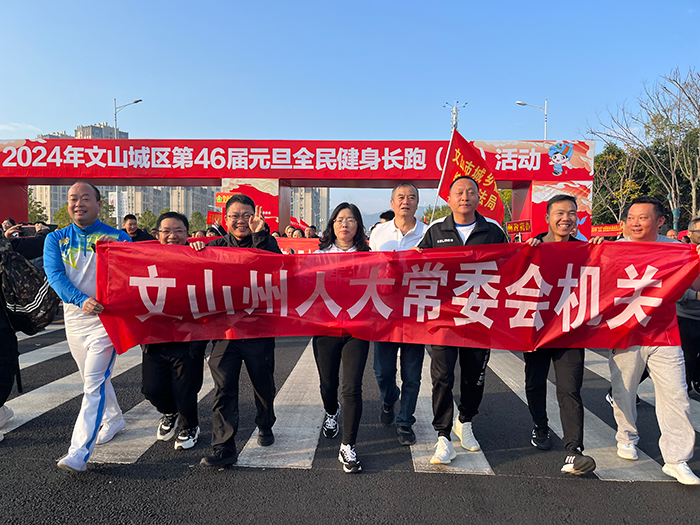 29日,2024年文山城区第46届元旦健身长跑(走)鸣枪起跑,州人大常委会机关9人参与长跑活动。