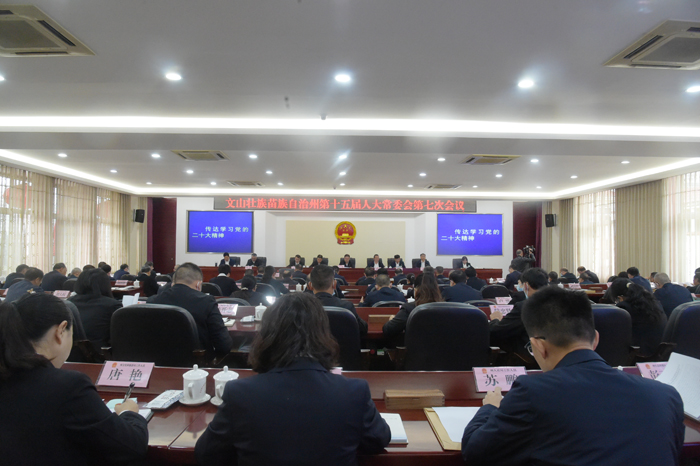 会议听取州人大民族外事侨务委员会负责人作关于检查《云南省文山壮族苗族自治州自治条例》实施情况的报告。